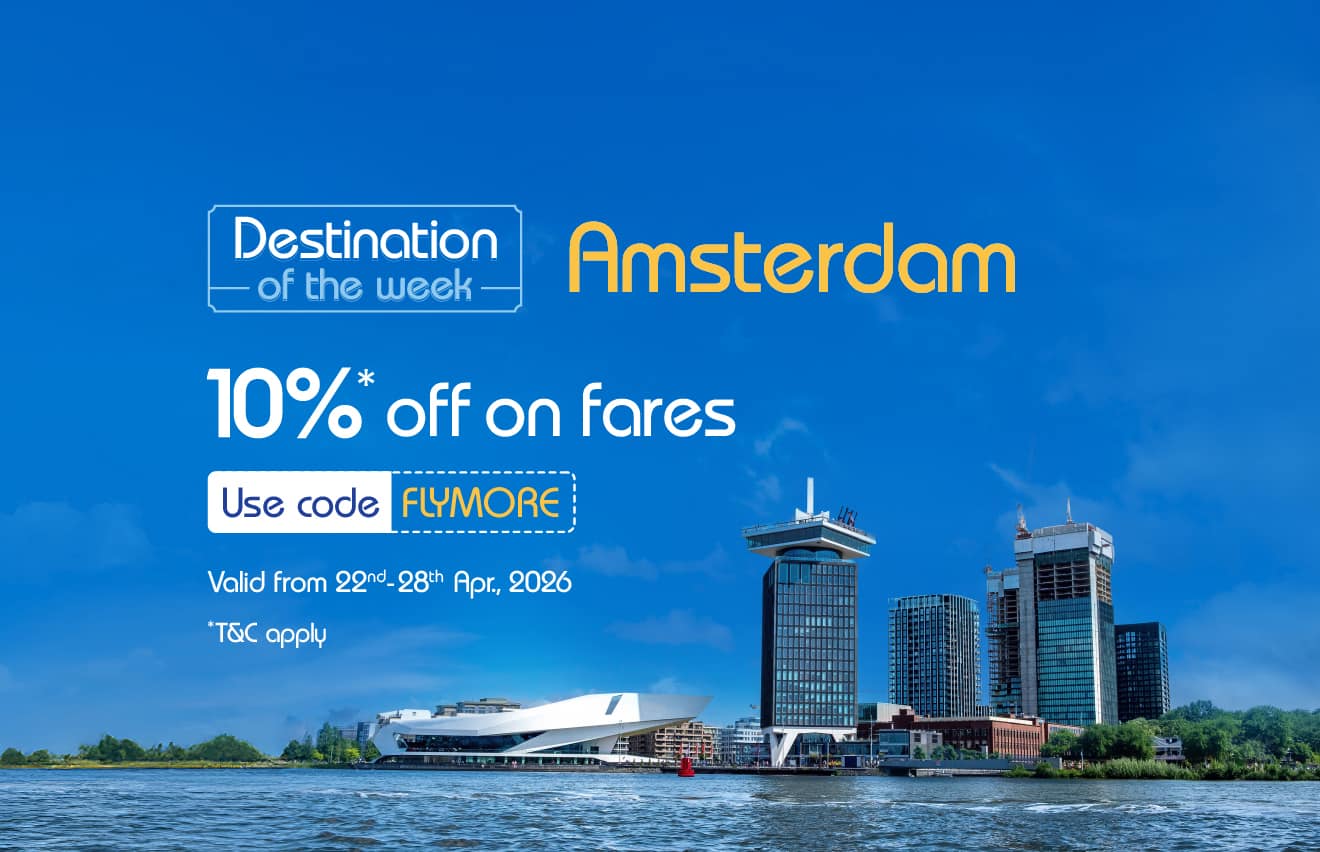 - The Offer is applicable on bookings made using promo code “FLYMORE” for select international sectors.