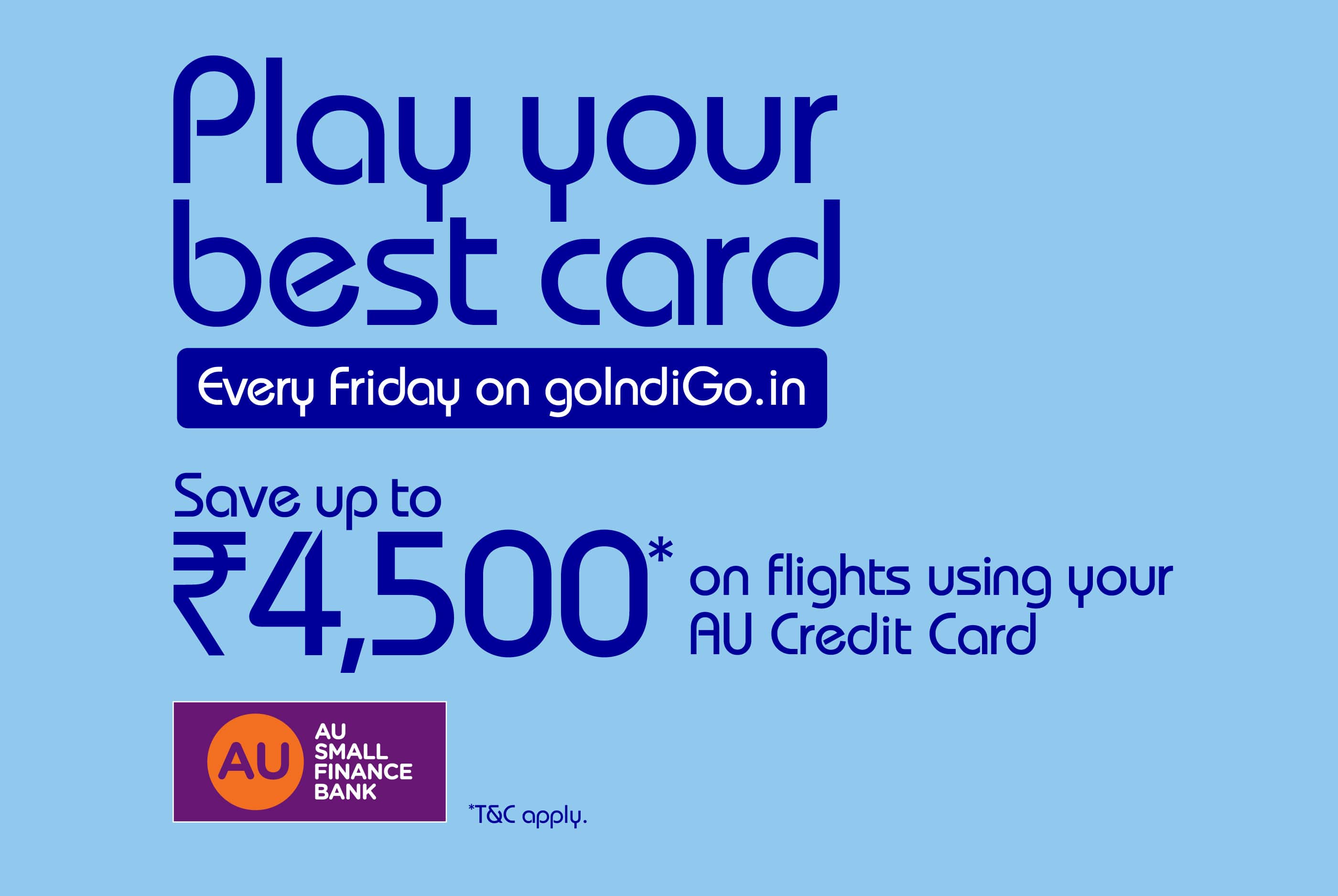 Instant Discount on flight bookings made through IndiGo website (www.goindigo.in) and IndiGo mobile App (whether android or iOS) by the eligible Card members for AU Credit Card as per below details: