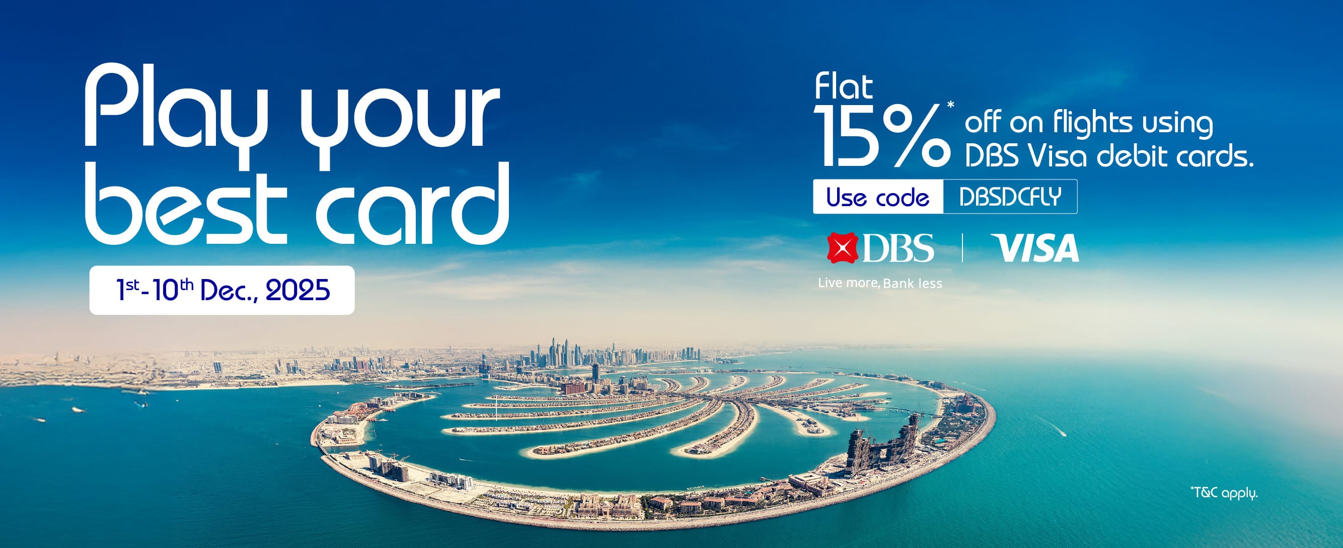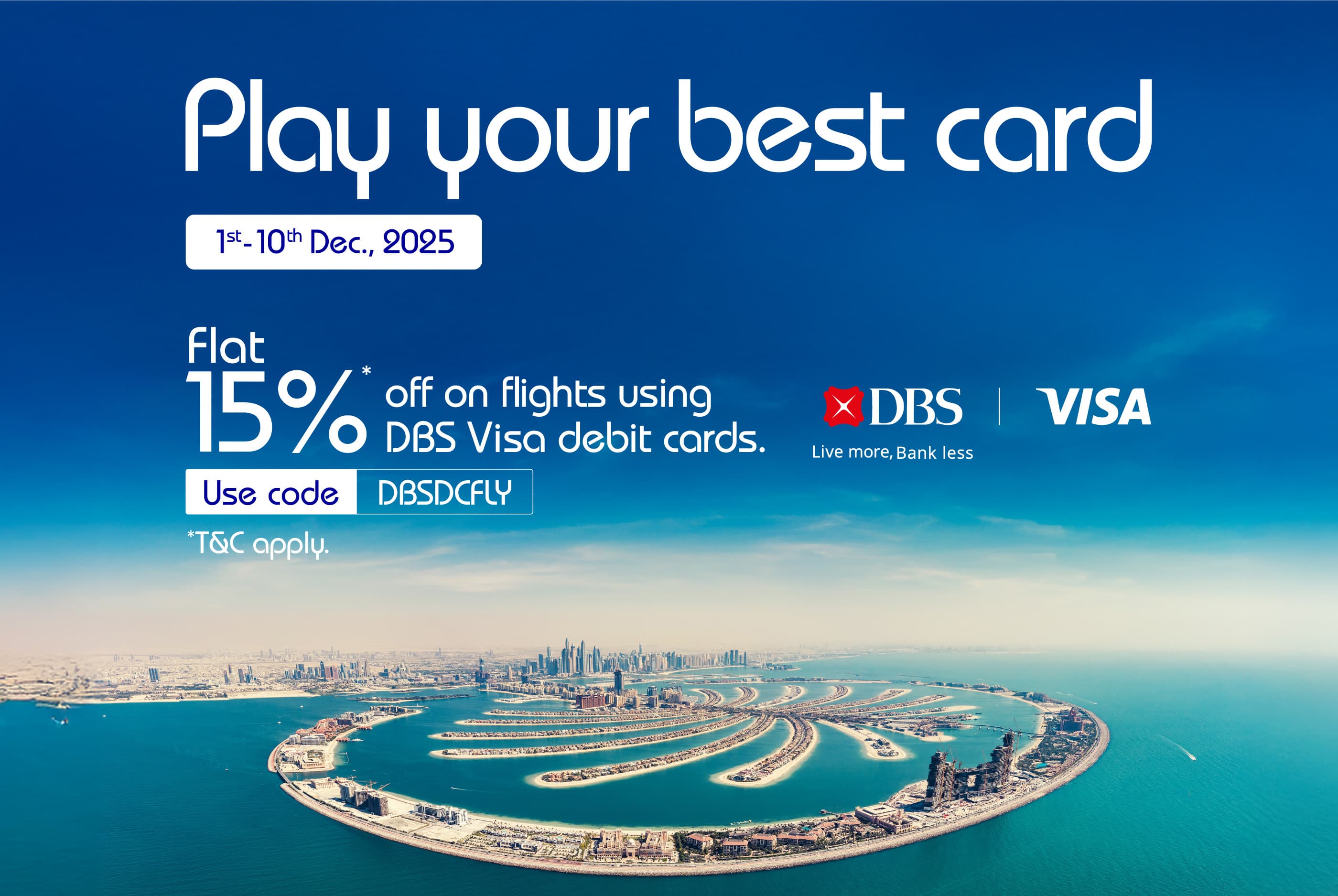 Instant Discount on flight bookings made through IndiGo website (www.goindigo.in) and IndiGo mobile App (whether android or iOS) by the eligible Cardmembers of the DBS Visa Debit Card as per below details: Offer Construct: